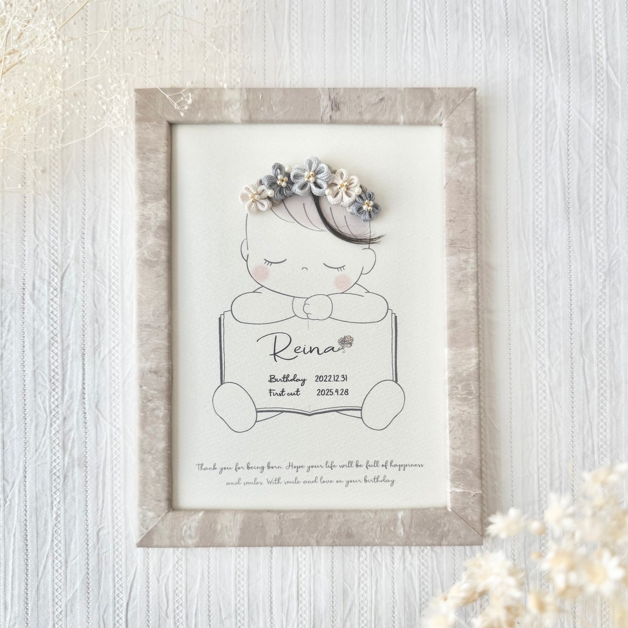 髪の毛を切る前は命名書として飾っていただいても